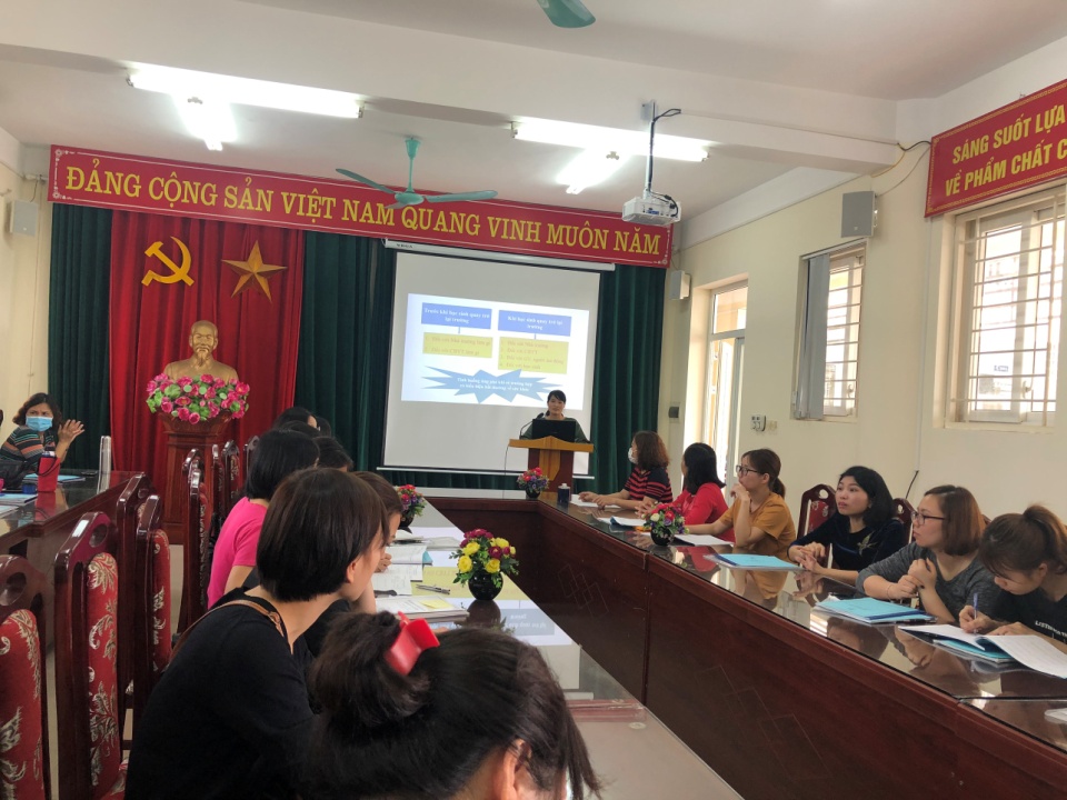 Trong buổi tập huấn, nhân viên y tế nhà trường đã trình bày tình hình dịch bệnh hiện nay, sự chuẩn bị của nhà trường và cán bộ y tế trước và sau khi học sinh đến trường trở lại. Hướng dẫn GV, NV quy trình đón học sinh đi học lại sau nghỉ dịch. Cách xử lý những trường hợp học bị sốt, học sinh phải cách ly (nếu có)