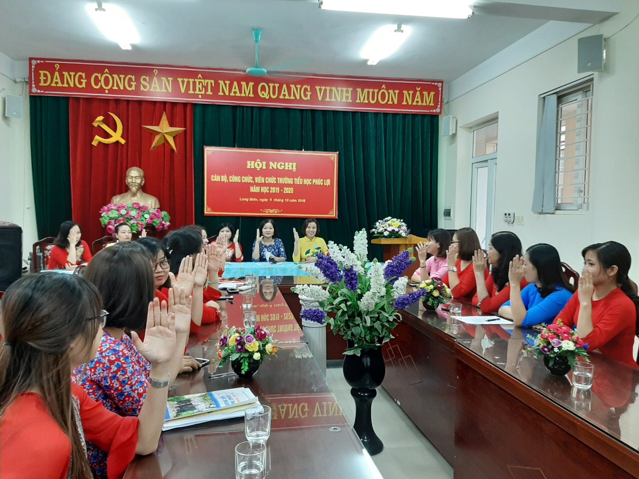Thực hiện Hướng dẫn số 10/HD-LĐLĐ ngày 14/9/2018 của Liên đoàn lao động quận Long Biên về việc hướng dẫn tổ chức Hội nghị CB,CC,VC năm học 2019-2020. Sáng ngày 4/10/2019, Trường Tiểu học Phúc Lợi đã long trọng tổ chức Hội nghị cán bộ, công chức, viên chức năm học 2019-2020.