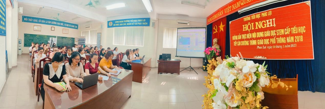 Nhằm nâng cao nhận thức, năng lực tổ chức giáo dục STEM trong nhà trường; trang bị các kiến thức, kĩ năng nền tảng về giáo dục STEM; bồi dưỡng năng lực xây dựng bài học STEM, chủ đề STEM trong dạy học các môn học/hoạt động giáo dục, ngày 20/5, Sở GD&ĐT Hà Nội tổ chức hội nghị hướng dẫn thực hiện nội dung giáo dục STEM cấp tiểu học tiếp cận theo Chương trình giáo dục phổ thông 2018. Trường Tiểu học Phúc Lợi tham dự buổi tập huấn với hơn 40 cán bộ và giáo viên theo hình thức trực tuyến.
