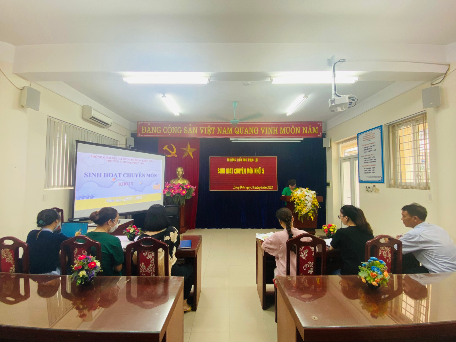 !important; Năm học 2022 – 2023 sắp bắt đầu, khi tình hình dịch bệnh do Covid-19 đã phần nào được kiểm soát. Một thử thách đặt ra với ngành giáo dục Thủ đô nói chung cũng như giáo viên trường Tiểu học Phúc Lợi nói riêng là làm sao đảm bảo việc dạy – học đạt được hiệu quả, chất lượng. Để có thể có được những giờ học sinh động, hấp dẫn học sinh, các thầy cô giáo trường tiểu học Phúc Lợi đã có buổi sinh hoạt chuyên môn đi sâu vào việc góp ý giáo án dạy học từng môn học, chia sẻ kinh nghiệm trong dạy và học đảm bảo chất lượng, hiệu quả.