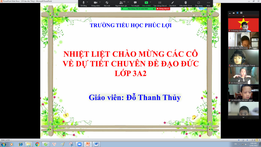 Tiết chuyên đề được thực hiện bởi cô giáo Đỗ Thị Thanh Thủy giáo viên chủ nhiệm lớp 3A2 theo hình thức dạy học trực tuyến vào 14h00 ngày 17/1/2022.