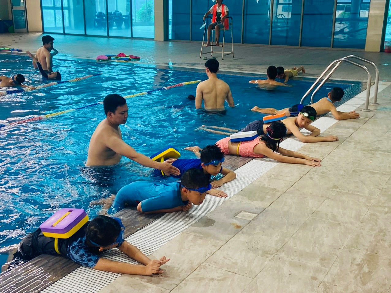 Một số hì !important;nh ảnh của học sinh Tiểu học Phúc Lợi tại bể bơi bốn mùa.