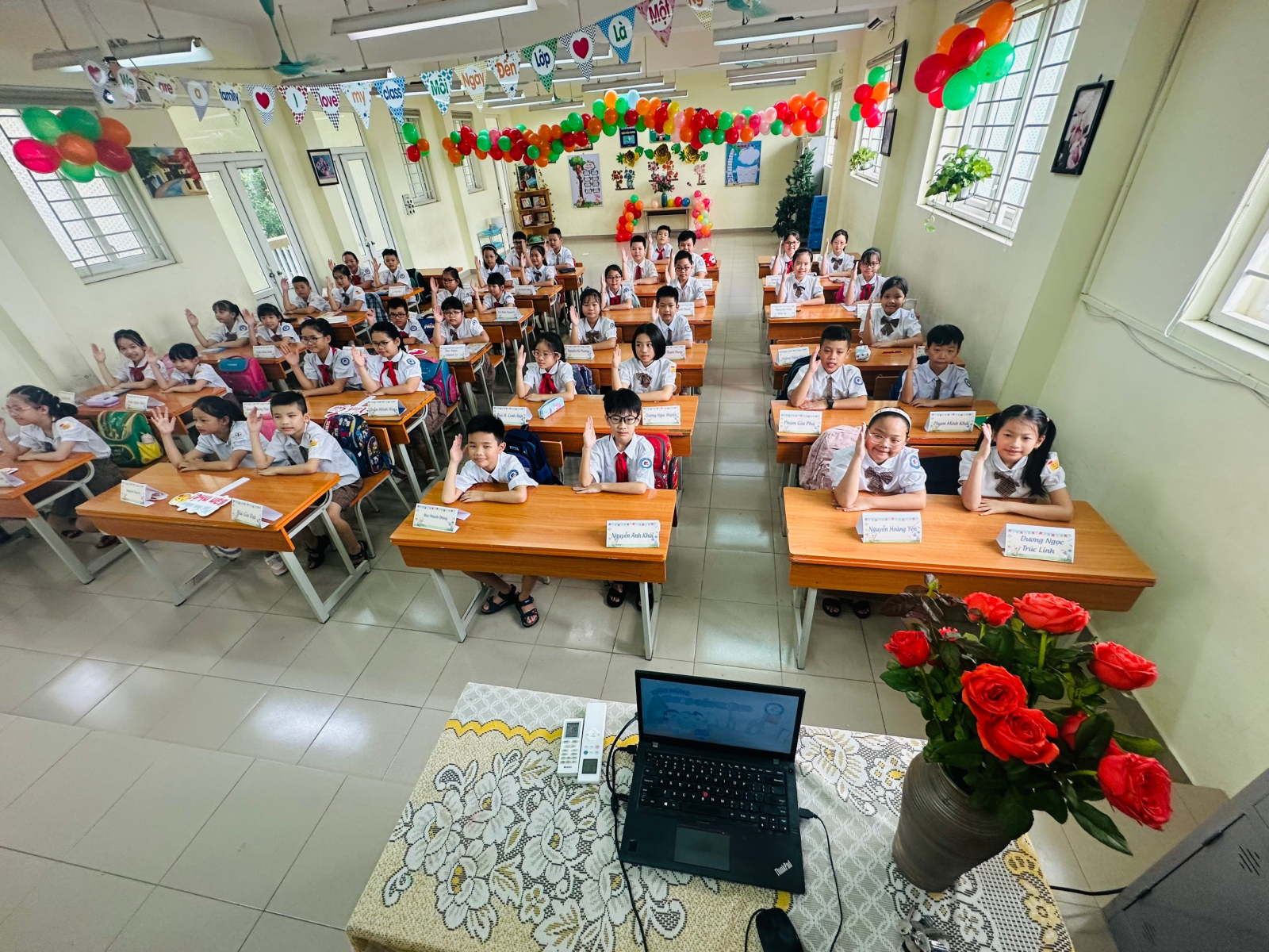 Trong buổi gặp mặt đầu tiên, các bạn học sinh khối Bốn được làm quen với cô giáo chủ nhiệm mới. Lớp học hôm nay như được đánh thức sau những ngày hè oi ả. Các hàng ghế được kê ngay ngắn, các bạn học sinh trong trang phục nghiêm túc, gọn gàng, ngồi đúng vị trí của mình. Cô Ngô Thị Minh Phú - hiệu trường nhà trường đã đến từng lớp chúc mừng và dặn dò các con chuẩn bị chu đáo cho ngày khai giảng năm học mới sắp tới.