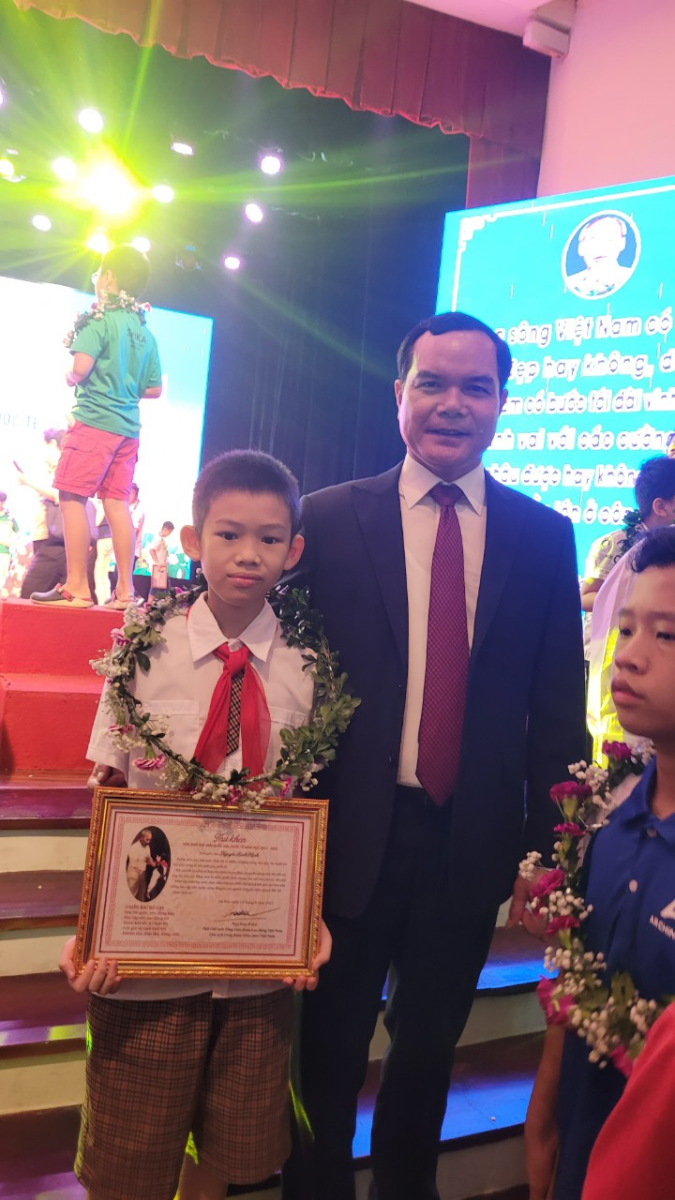 !important; Điều mà Bình Minh vinh dự và hạnh phúc nhất là sáng ngày 18/9/2022, em được tham dự “Lễ tuyên dương học sinh đạt giải Quốc gia, Quốc tế năm học 2021- 2022” do Công Đoàn Viên Chức Việt Nam Tổ Chức tại Cung văn hóa thiếu nhi Hà Nội. Thật vinh dự và hạnh phúc biết bao khi em được Phó Chủ Tịch Nước – Bà Võ Thị Ánh Xuân và Chủ Tịch Tổng Liên Đoàn Lao Động Việt Nam – Ông Nguyễn Đình Khang, trao tặng những món quà, những tình cảm và những lời động viên vô cùng quý giá mang đầy ý nghĩa.