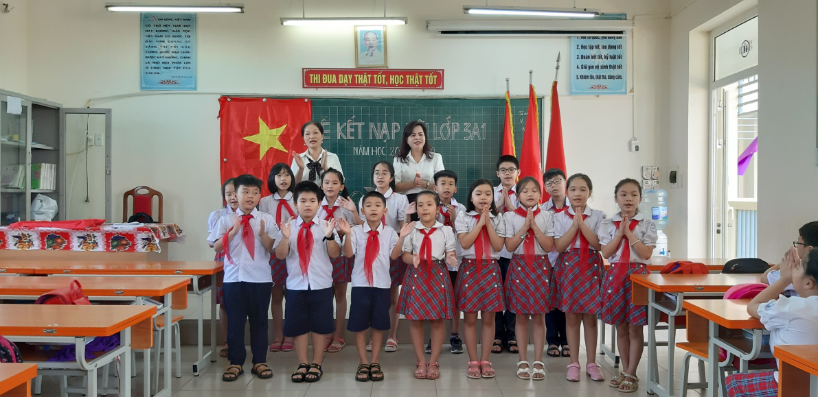 Đúng 8h ngày 18/5/2020, Lễ kết nạp đội đã diễn ra tại các chi đội khối 3. Về dự lễ kết nạp Đội viên có cô giáo Ngô Thị Minh Phú - Hiệu trưởng nhà trường; cô Nguyễn Thúy Hà – Phó Hiệu trưởng và cô Tổng phụ trách.