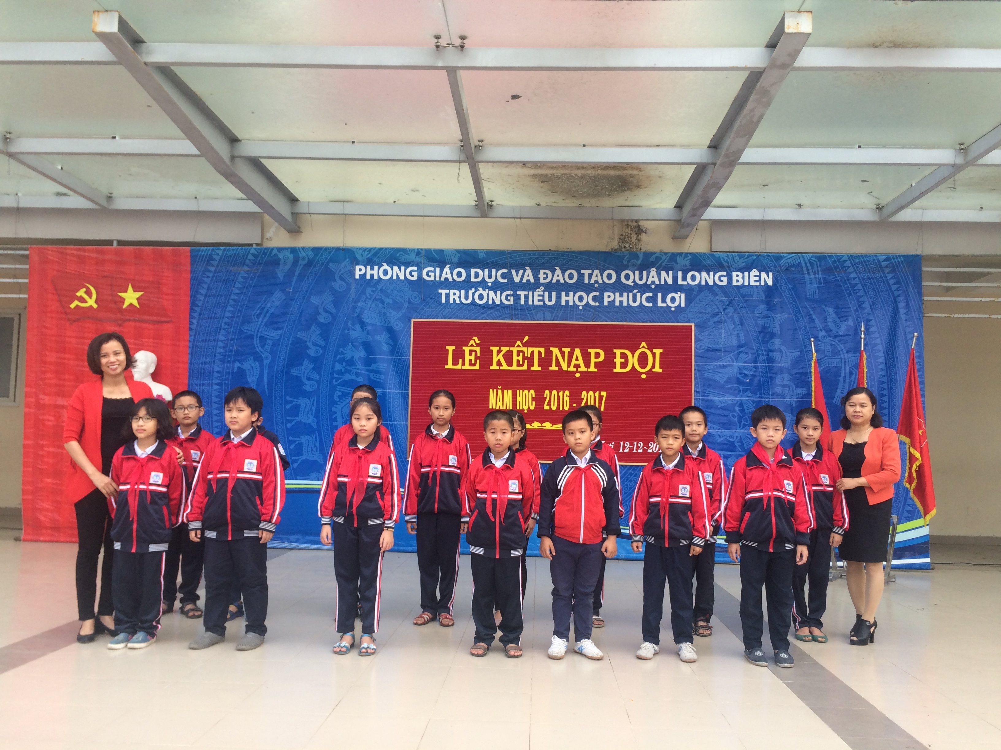 Sáng ngày 12/12/2016, Liên đội trường Tiểu học Phúc Lợi đã tổ chức lễ kết nạp Đội cho 122 nhi đồng khối 4,5. Tham dự Lễ kết nạp Đội viên mới có cô Nguyễn Thị Vân – Hiệu trưởng, cô Nguyễn Thúy Hà – Hiệu phó cùng toàn thể các thầy cô giáo và các em học sinh nhà trường.