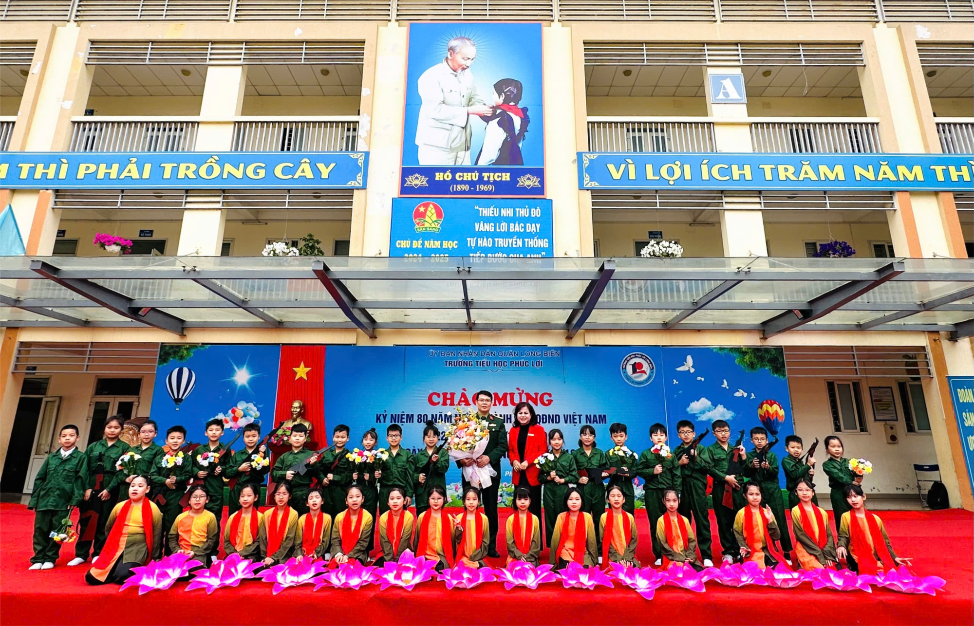 Học sinh trường Tiểu học Phúc Lợi đã chuẩn bị những tiết mục văn nghệ đặc sắc và các hoạt cảnh sân khấu hóa tái hiện lại những chiến công hào hùng của quân và dân ta trong các cuộc kháng chiến. Những tiết mục này không chỉ giúp các em hiểu thêm về lịch sử dân tộc mà còn khơi dậy niềm tự hào, lòng kính trọng đối với lực lượng Quân đội nhân dân Việt Nam.