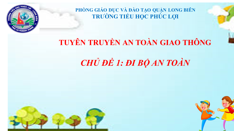 Thực hiện công văn số 144/CALB-CSGTTT ngày 01/01/2023 của Công an quận Long Biên về tăng cường công tác tuyên truyền, phổ biến giáo dục pháp luật về trật tự an toàn giao thông trên địa bàn quận Long Biên. Trường Tiểu học Phúc Lợi tuyên truyền nội dung an toàn giao thông chủ đề 1: Đi bộ an toàn